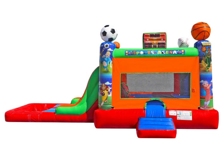 1Score big fun with our Sports Combo! Featuring a bounce area, climbing wall, and double slide, this sporty inflatable is decorated with fun athletic themes — perfect for sports fans and high-energy kids at birthday parties and community/school events.