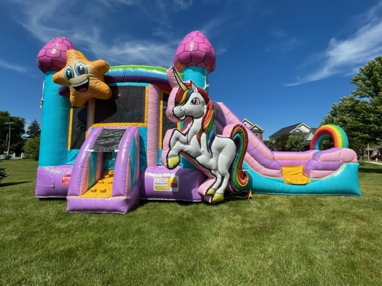 1Add sparkle and magic to your party with our Unicorn Bounce and Slide! Featuring enchanting unicorn designs, a spacious bounce area, and a super slide, it’s perfect for whimsical birthdays and fairy-tale celebrations.