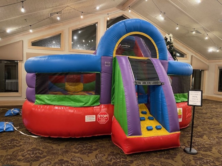 - OCCUPANCY: A maximum of 5-6 kids of equal size at one time for bounce houses, and 1 person at a time for slides is what most inflatable manufacturers recommend.